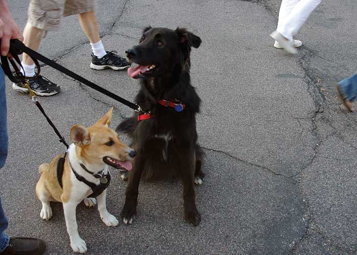 Still I’m encouraged that both dogs walked through the crowds without barking or lunging at people or other dogs (or jumping on cars, which could have turned ugly). They were pretty well behaved all in all.