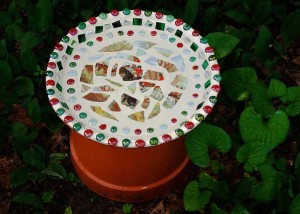 As for Cheryle (the little stinker), she went back and made another mosaic birdbath, going with the principle of cutting losses and starting out fresh with beautiful results!